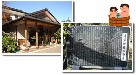 お坊さんは喜び足を湯につかり、わらじをはいて立ち去ろうとした時、お湯がふき出している所に神社がまつられているのを目にし、まつってあったお幣束を一枚取り、湯澤の川へ流したそうです。